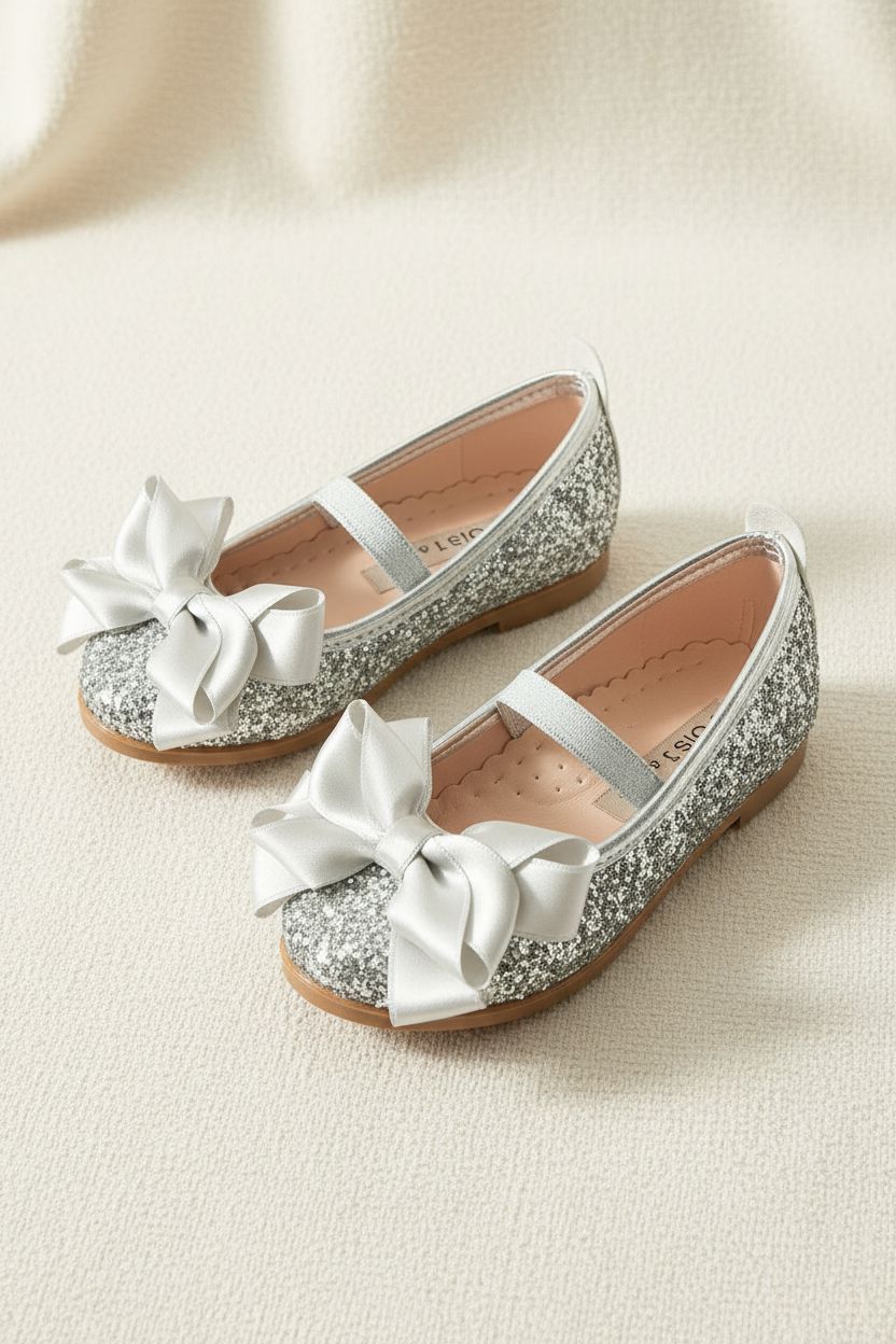 Make her feel like a princess with these charming bow shoes, perfect for Eid Al-Fitr, flower girl duties, or any special occasion. The soft glitter finish and classic design create a beautiful, elegant look. Featuring an elastic strap for easy on-and-off and a slip-resistant durable sole, these shoes are both secure and comfortable for dancing the day away at Eid celebrations, parties, or formal events.
