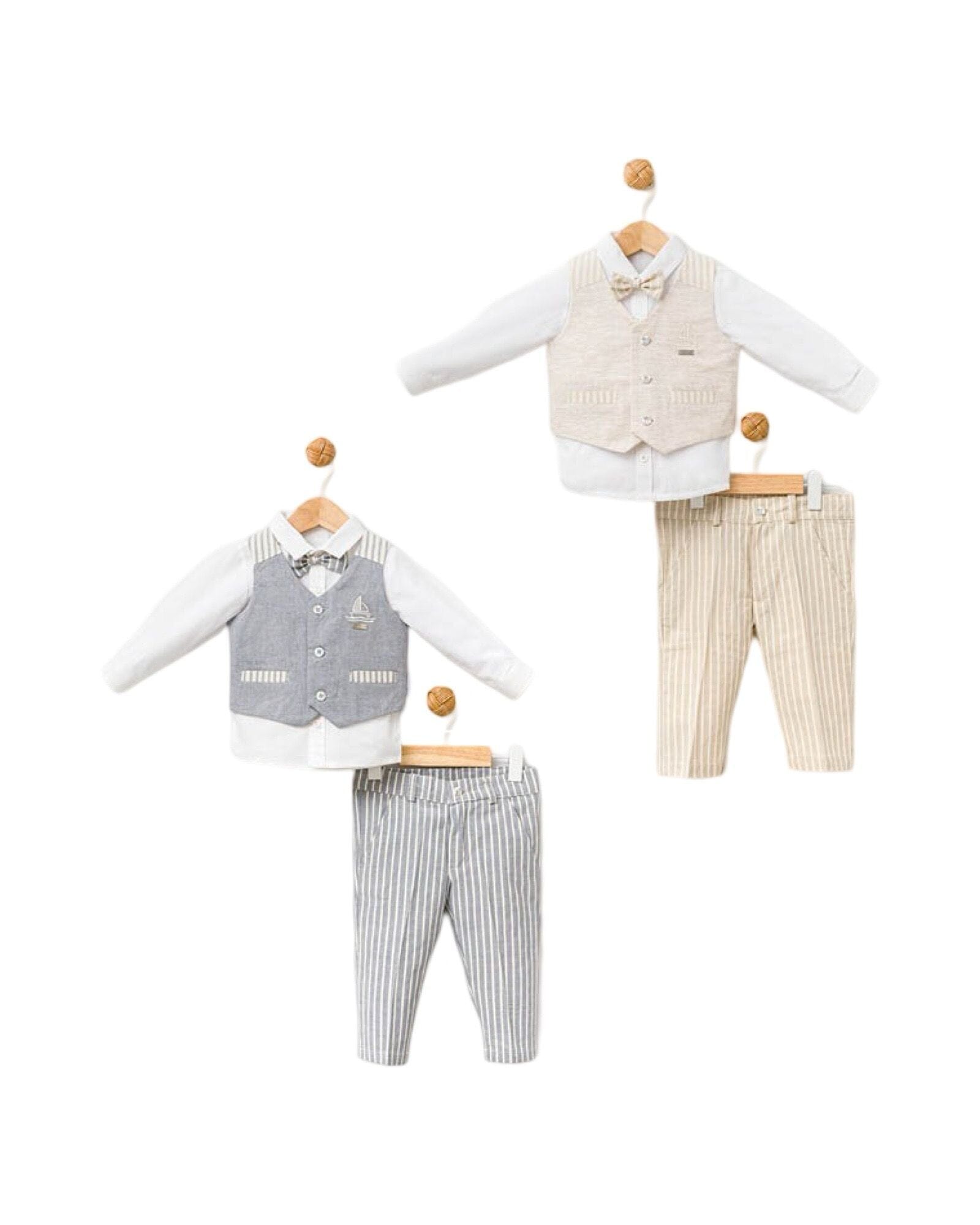 Dress your little gentleman in style with our Classic Striped Baby Boy Set. Perfect for special occasions or casual outings, this set combines elegance and practicality.