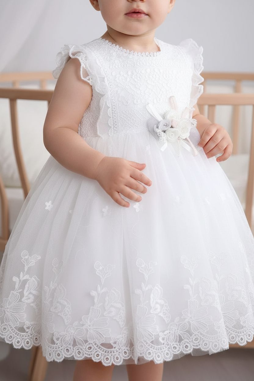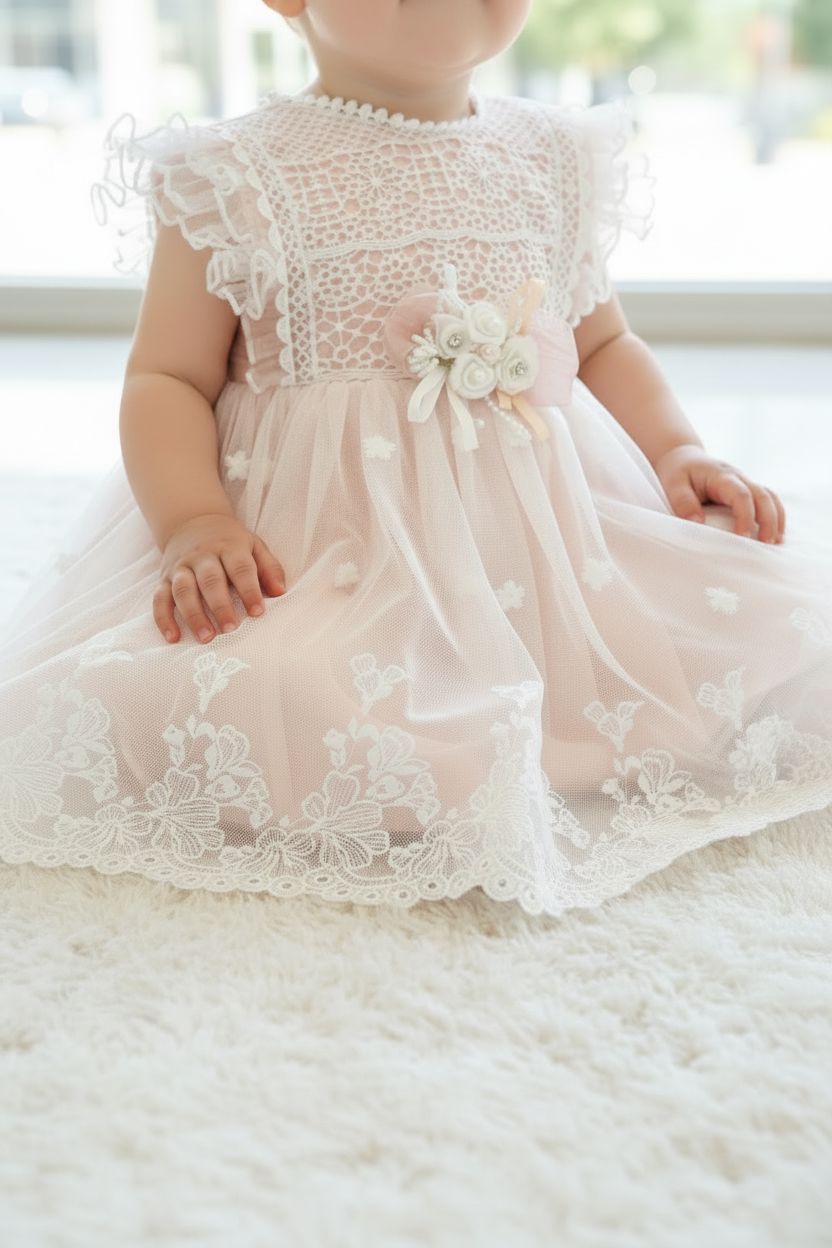 This adorable baby dress is a charming addition to any little one's wardrobe. Perfect for special occasions, it features: