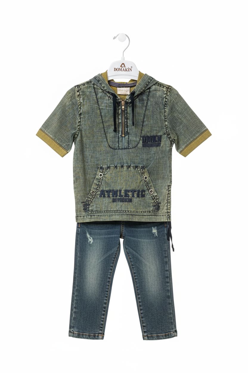 A 2-piece boys' outfit set featuring a denim hoodie-style top and jeans. Perfect for casual wear and everyday outings.